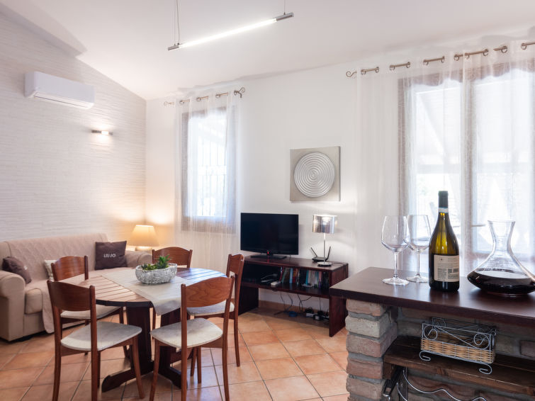 Villa 5-kamers 110 m2. Comfortabel en smaakvol ingericht: woon-/eetkamer met open haard en Sat-TV (Flatscreen TV), air-conditioning en heteluchtverwarming. Uitgang naar de zitplaats in de tuin. 2 2-pers. kamers, elke kamer heeft ventilator. 1 kamer met 1 bed en ventilator. 1 2-pers. kamer met douche/WC en Sat-TV (Flatscreen TV), air-conditioning en heteluchtverwarming. Kookhoek (4-pits kookplaat, oven, afwasmachine, broodrooster, waterkoker, magnetron, elektrische koffiemachine). Douche/bidet/WC. Verwarming, heteluchtverwarming. Verwarming alleen beschikbaar van 01.12. tot 31.03, Verwarming niet in alle ruimtes. Ruime zithoek in de tuin 30 m2, overdekt. Terrasmeubelen, barbecue, ligstoelen. Uitzicht op het zwembad. Ter beschikking: wasmachine, strijkijzer, kinderstoel, kinderbed tot 2 jaar (extra), haardroger. Internet (Internet (WiFi), gratis). Parkeerplaats (3 Auto's). Rookmelders, brandblusser. IT081005C2NS8EGOD9