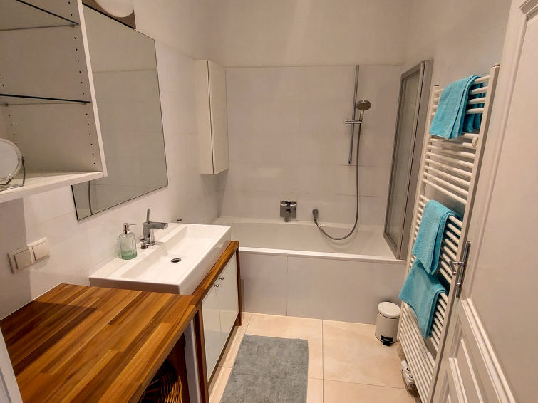"Sobieskiplatz", appartement 3-kamers 81 m2 op de 1e verdieping. Ruim en licht, gerenoveerd in 2022, zeer mooi en stijlvol ingericht: groot hal met aparte WC. Woon-/slaapkamer met 1 2-pers bed, TV en internationale TV-zenders (Flatscreen TV). Groot woon-/eetkamer met 1 2-pers divanbed. Woonkeuken (oven, afwasmachine, 4 keramische glas kookplaten, broodrooster, waterkoker, elektrische koffiemachine). Uitgang naar het balkon. Badkamer. Verwarming. Balkon 6 m2. Balkonmeubilair. Ter beschikking: wasmachine, droger, strijkijzer, haardroger. Internet (WiFi, gratis).