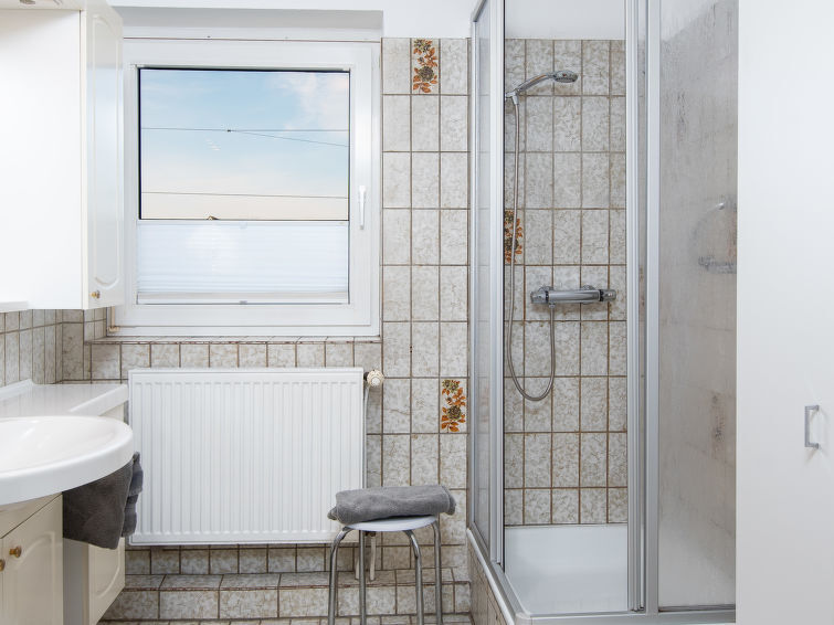 "Ferienwohnung Schäfer", appartement 3-kamers op de 1e verdieping. Gedeeltelijk afgeschuinde daken, gezellig ingericht: woonkamer met Kabel-TV (Flatscreen TV). 1 kamer met 1 2-pers bed. 1 kamer met 2 bedden. Keuken (4-pits kookplaat, oven, broodrooster, waterkoker, elektrische koffiemachine) met eettafel. Uitgang naar het balkon. Douche/WC. Balkon 25 m2. Balkonmeubilair. Niet geschikt voor kinderen onder 6 jaar. Niet rokers woning. Rookmelders.