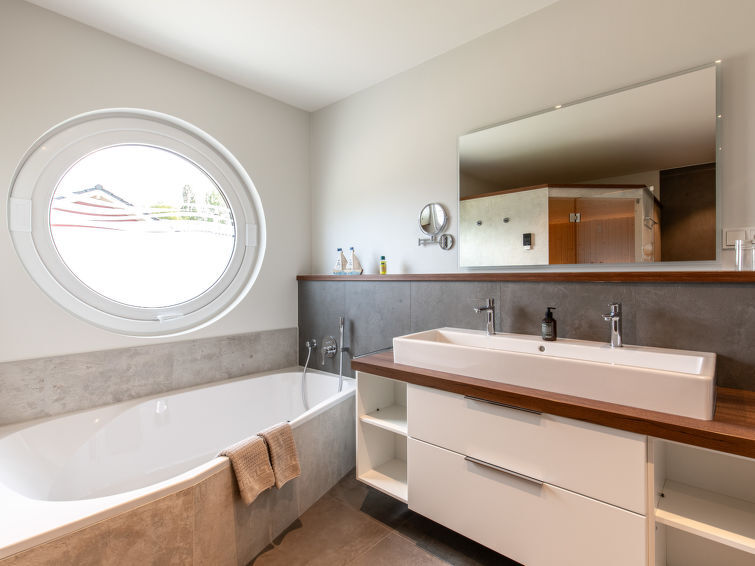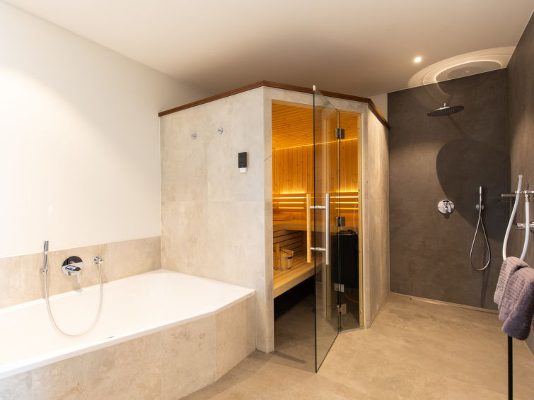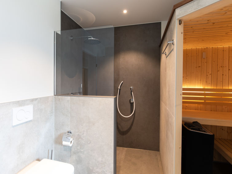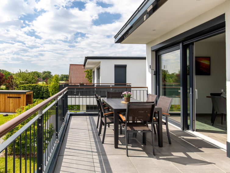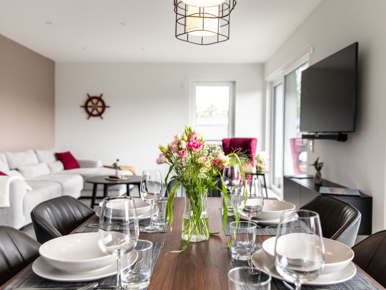 Huis 8-kamers 192 m2 op 2 verdiepingen. Ruim en licht, comfortabel en modern ingericht: groot woon-/eetkamer met Sat-TV (Flatscreen TV). Uitgang naar de tuin. 2 kamers, elke kamer heeft 1 2-pers bed (180 cm, lengte 200 cm), Sat-TV (Flatscreen TV). 1 kamer met 1 x 2 stapelbedden (90 cm, lengte 200 cm). Open keuken (oven, afwasmachine, 4 keramische glas kookplaten, broodrooster, waterkoker, magnetron, elektrische koffiemachine, kookeiland). Aparte WC, bad/douche/WC, dubbele wastafels, Sauna. Gas-verwarming. Bovenverdieping: groot woon-/eetkamer met Sat-TV (Flatscreen TV). Uitgang naar het balkon. 2 kamers, elke kamer heeft 1 2-pers bed (180 cm, lengte 200 cm), Sat-TV (Flatscreen TV). 1 kamer met 1 bed (90 cm, lengte 200 cm). Open keuken (oven, afwasmachine, 4 keramische glas kookplaten, broodrooster, waterkoker, magnetron, elektrische koffiemachine, kookeiland). Aparte WC, bad/douche/WC, dubbele wastafels, Sauna. Groot balkon 30 m2, groot terras 30 m2. Terrasmeubelen, balkonmeubilair. Ter beschikking: wasmachine, kinderstoel, kinderbed. Internet (Internet (WiFi), gratis). Niet rokers woning. Boekingen zijn alleen voor vakantiedoeleinden toegestaan.