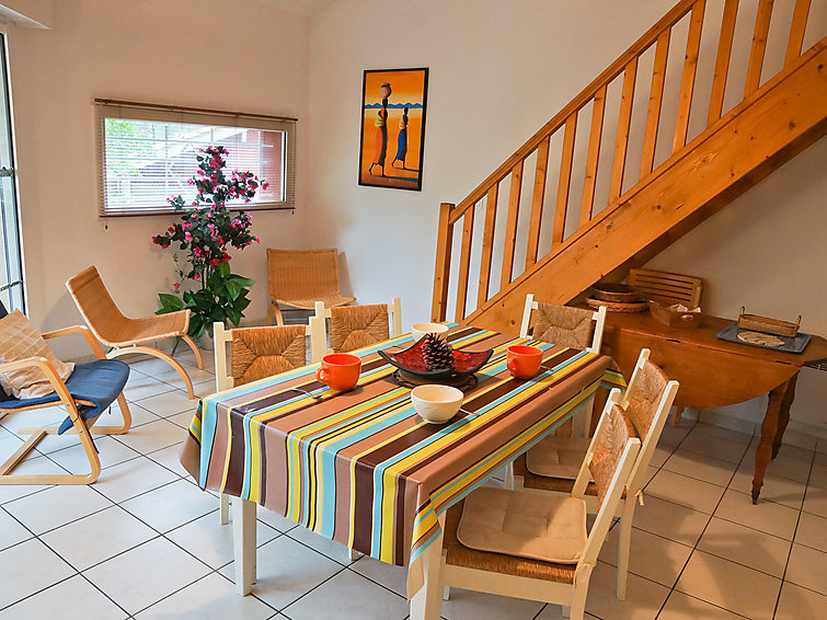 Residentie "Golf Loisirs". Aan de rand van de plaats, 2 km van het centrum, 2 km van zee, 5 km van het meer, 2 km van het strand. Voor medegebruik: openluchtzwembad (13 x 17 m, 180 cm diepte, seizoensgebonden beschikbaarheid: 18.Jun. - 18.Sep.). Parkeerplaats op het terrein. Winkel 2 km, supermarkt 2 km, restaurant 700 m, fietsverhuur 300 m, bushalte "Marie Curie" 1.7 km, zandstrand "Plage Sud" 2 km. Golfterrein (18 holes) 500 m, surfschool 3 km, zeilschool 6 km, tennis 300 m, manege 1.5 km, fietspad 200 m. Attracties in de buurt: Bordeaux 60 km, Dune du Pyla 70 km, saint Emilion 60 km, Cap Ferret 70 km. De eigenaar accepteert geen jeugdgroepen.