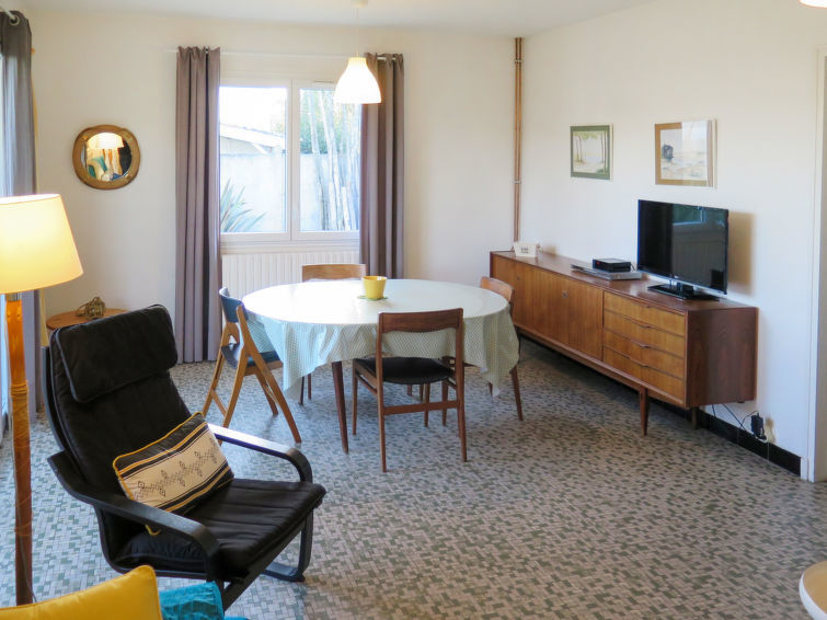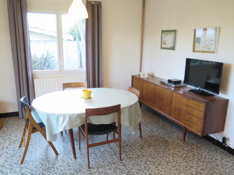 Villa "Glamys". Huurobject bestaande uit hoofd-/ bijgebouw. Voor alleengebruik: terrein 500 m2 (omheind) met gazon en bloemen, openluchtzwembad (6 x 3 m, 135 - 150 cm diepte, seizoensgebonden beschikbaarheid: 01.Mei. - 30.Sep.) met oprolbaar afdekscherm. Poolhouse, terras, overdekte parkeerplaats bij het huis op het terrein. Winkel 850 m, supermarkt 3 km, restaurant 850 m, bushalte "XIV juillet" 150 m, zandstrand "Le Grand Crohot" 12 km. Attracties in de buurt: Plage Arès sur le Bassin d'Arcachon 100 m. De omgeving is gevoelig voor geluidsoverlast. Gelieve geen lawaai te maken en de rust te bewaren.