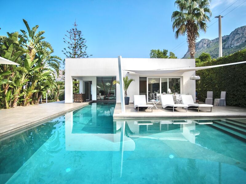Villa "Re di Denari". 3 km van het centrum van Terrasini, 40 km van het centrum van Palermo, zonnige ligging villa wijk, 3 km van zee. Voor alleengebruik: terrein 3.000 m2 (omheind), tuin, openluchtzwembad (16 x 8 m, 120 - 350 cm diepte, seizoensgebonden beschikbaarheid: 01.Apr. - 31.Okt.). Tuinmeubelen, barbecue, onderhoud zwembad door de eigenaar/tuinman. Verwarming alleen beschikbaar van 01.Dec. - 31.Mrt.. Beschikbaar: fietsen (2) (extra). Parkeerplaats op het terrein. Levensmiddelenwinkel 3 km, supermarkt 1.5 km, restaurant 2 km, bar 2 km, bushalte 1.5 km, treinstation "Terrasini/Cinisi" 3.5 km, zandstrand "La Priola" 3 km, stenenstrand "Cala Rossa" 4 km. Attracties in de buurt: Borgo Parrini 13 km, Segesta Parco Archeologico 43 km, Erice 70 km, Trapani/Aliscafi per Isole Egadi 73 km, San Vito lo Capo 75 km, Saline di Marsala 85 km. Wandelgebied Riserva Naturale Monte Pecoraro 15 km, Riserva Naturale dello Zingaro 46 km. Auto noodzakelijk.