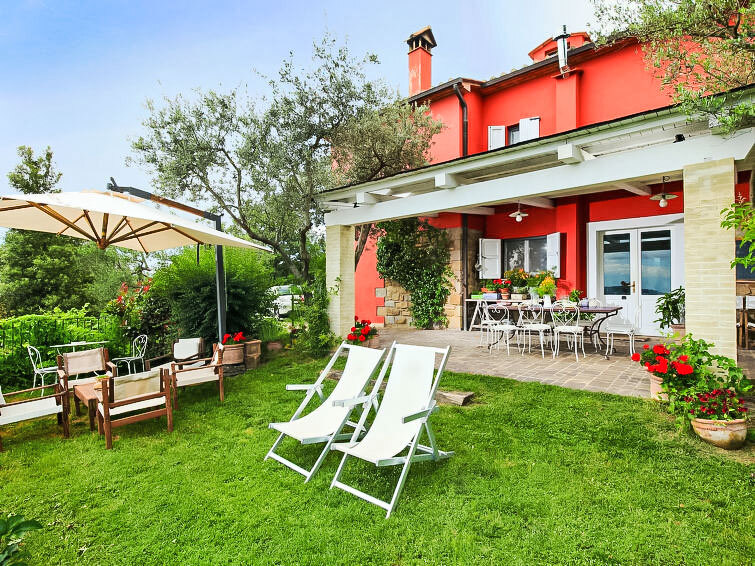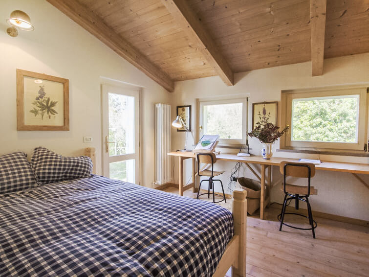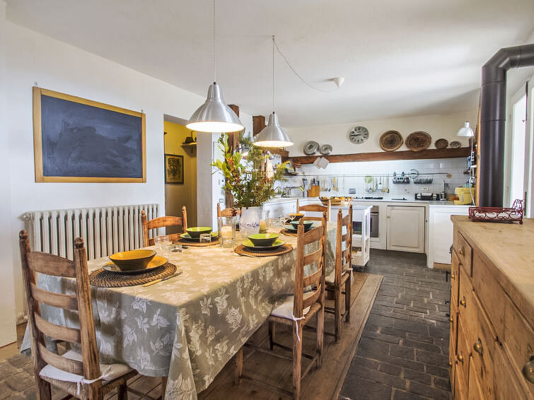 " Paradiso", villa 7-kamers 300 m2 op 2 verdiepingen, op de begane grond. Zeer mooi en smaakvol ingericht: hal met tegelkachel. Uitgang naar de tuin. Groot woon-/eetkamer met open haard, TV, Flatscreen TV en verwarming. Uitgang naar de tuin. Woon-/slaapkamer met 1 x 2 stapelbedden, 1 2-pers bed, kookhoek, bad/bidet/WC, verwarming en air-conditioning. Uitgang naar de tuin. Woonkeuken (5-pits kookplaat, oven, afwasmachine, magnetron, diepvriezer) met open haard, eettafel en TV (Flatscreen TV), houtkachel. Uitgang naar de loggia. Douche/bidet/WC. Bovenverdieping: groot woon-/eetkamer met open haard, TV en Flatscreen TV. 1 2-pers. kamer met douche/bidet/WC, TV, Flatscreen TV en air-conditioning. Uitgang naar de tuin. 1 2-pers. kamer met Kleedkamer. 1 kamer met 2 bedden, TV, Flatscreen TV en air-conditioning. Uitgang naar de tuin. Bad/bidet/WC, hydro massage bad. Houtverwarming, verwarming met zonne-energie. Houten vloeren, natuurstenen vloeren. Panoramazicht op het dal. Ter beschikking: wasmachine, klamboe, haardroger. Internet (Internet (WiFi)). Oplaadstation. 1 klein huisdier/hond toegestaan. De woonkamer met een tweepersoonsbed op de tussenverdieping, een stapelbed, een kitchenette en een badkamer, bevindt zich in het mooie en gezellige bijgebouw in de tuin op slechts enkele meters van het zwembad. Indien het huis voor zes personen wordt geboekt, wordt het bijgebouw uitgesloten van de huurprijs. Smart TV beschikbaar in het hoofdgebouw. Als er minder dan het maximale aantal gasten in de accommodatie verblijft, is het bijgebouw niet beschikbaar voor gebruik. IT054039C204033329