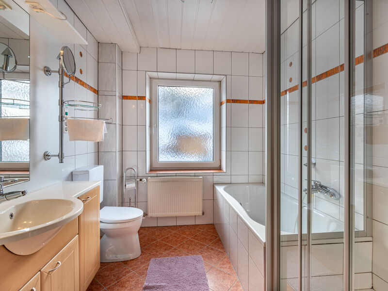 "Haus Hilda", huis 9-kamers 250 m2 op 3 verdiepingen. Doelmatig ingericht: hal. Woonkeuken (oven, afwasmachine, 4 keramische glas kookplaten, broodrooster, waterkoker, magnetron, elektrische koffiemachine) met eethoek. Aparte WC. Verwarming. Bovenverdieping: 2 kamers, elke kamer heeft 1 bed. 1 2-pers. kamer. Woonkamer met Sat-TV (Flatscreen TV). Bad/douche/WC. 2e Verdieping: 2 2-pers. kamers. Uitgang naar het balkon. 2 2-pers. kamers, elke kamer heeft Sat-TV (Flatscreen TV). Douche, aparte WC. Parketvloeren. Balkon. Balkonmeubilair. Ter beschikking: Internet (WiFi, gratis). Niet rokers woning. Maximaal 1 huisdier/hond toegestaan. Als er minder dan het maximale aantal gasten in de accommodatie verblijft, zijn niet alle wooneenheden beschikbaar voor gebruik.