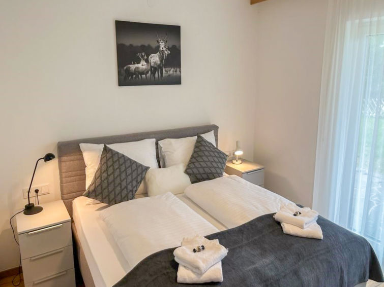 "Lechner", appartement 3-kamers souterrain. Licht, gerenoveerd, mooi en modern ingericht: hal. Woon-/eetkamer met 1 divanbed, eettafel, Kabel-TV en Flatscreen TV. Uitgang naar de tuin, naar het terras. 2 2-pers. kamers. Open keuken (afwasmachine, 4 keramische glas kookplaten, broodrooster, waterkoker, elektrische koffiemachine). 2 douche/WC's. Parketvloeren, natuurstenen vloeren. Groot terras, groot tuin. Terrasmeubelen, barbecue, ligstoelen. Mooi panoramazicht op het landschap. Ter beschikking: Internet (Internet (WiFi)). Niet rokers woning. Brandblusser. 50613-018294-2023