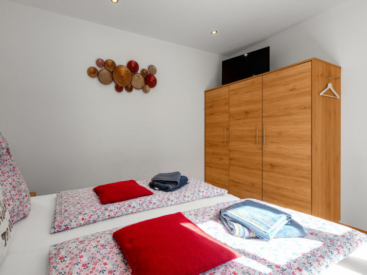 Appartement 3-kamers 50 m2, op de begane grond. Ruim, smaakvol en gezellig ingericht: 2 2-pers. kamers, elke kamer heeft Sat-TV (Flatscreen TV). Groot woonkeuken (oven, afwasmachine, 2 keramische glas kookplaten, magnetron, elektrische koffiemachine, pads voor de koffiemachine (Senseo)) met Sat-TV (Flatscreen TV). Uitgang naar het terras. Douche/WC, dubbele wastafels. Vloerverwarming. Houten vloeren. Terrasmeubelen. Uitzicht op het landschap. Ter beschikking: kinderstoel, kinderbed tot 2 jaar, haardroger. Internet (Internet (WiFi), gratis). Niet rokers woning. Rookmelders, geen lift. 50616-001214-2020