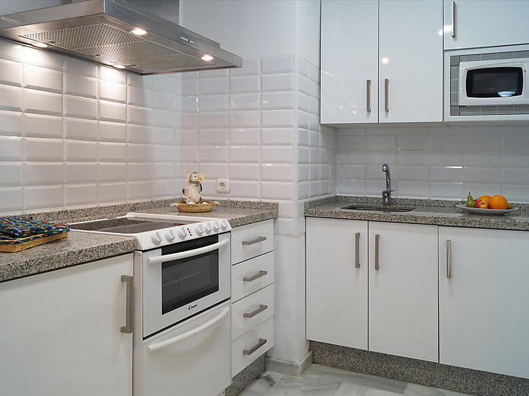 "Jardines del Mar", appartement 2-kamers 60 m2, souterrain. Het objekt is geschikt voor 2 volwassenen + 1 kinderen. Eenvoudig en comfortabel ingericht: woon-/eetkamer met Digitale TV, air-conditioning en heteluchtverwarming. Uitgang naar het terras. 1 2-pers. kamer met 1 2-pers bed (150 cm, lengte 190 cm). Uitgang naar het terras. Kleine keuken (2-pits kookplaat, oven, magnetron, diepvriezer) met doorgeefluik. Bad/bidet/WC. Terras 15 m2, overdekt. Terrasmeubelen, ligstoelen (2). Uitzicht op de tuin. Ter beschikking: wasmachine. Internet (WiFi, gratis). Parkeerplaats. Telefoon voor inkomende gesprekken. VUT/MA/08877
