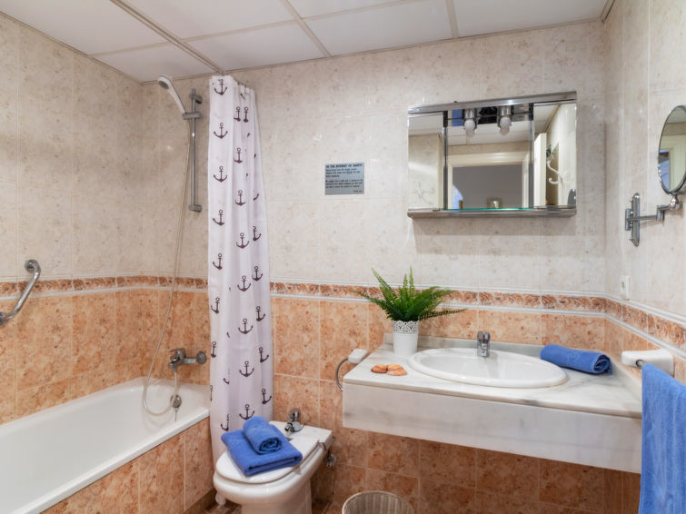 Appartement 3-kamers 82 m2 op de 1e verdieping. Comfortabel en mooi ingericht: woon-/eetkamer met Digitale TV. 1 kamer met 1 2-pers bed (150 cm, lengte 190 cm). 1 kamer met 1 2-pers bed (135 cm, lengte 190 cm). Keuken (oven, afwasmachine, 4 keramische glas kookplaten, magnetron, diepvriezer). Bad/bidet/WC. Air-conditioning, heteluchtverwarming. Terras 10 m2. Terrasmeubelen. Uitzicht op het zwembad en de tuin. Ter beschikking: wasmachine. Internet (WiFi, gratis). Parkeerplaats nr. 59. VUT/MA/03418